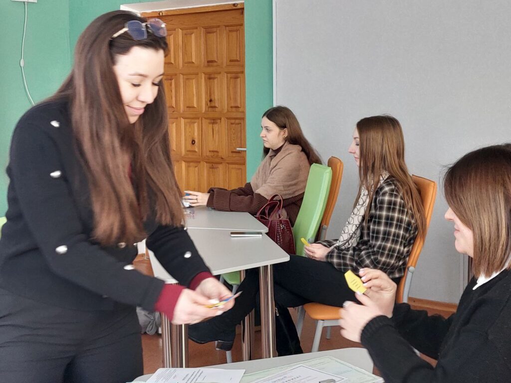 Первая часть мероприятия была посвящена развитию творческой самореализации молодых педагогов через преставление своего опыта. Перед присутствующими выступили молодые специалисты: Елена Репова, учитель Луганской специализированной школы №40 имени В.М.Комарова, Вера Чумакова, учитель Фабричненской средней школы; Алина Михайлик, учитель Беловской средней школы №2; Дарья Олач, учитель Краснолучской гимназии №1 имени Л. Литвяк; Анастасия Стецюк, учитель Краснолучской школы №4, которые поделились своим опытом реализации индивидуального образовательного маршрута (ИОМ).