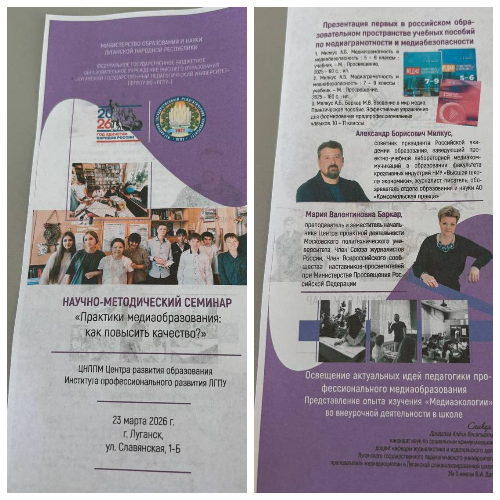 23 марта 2026 года на площадке ЦНППМ Центра развития образования Института профессионального развития ЛГПУ состоялся научно-методический семинар «Практики медиаобразования: как повысить качество?».