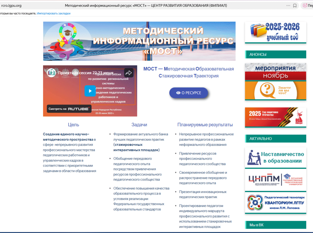 В ЦНППМ ЛГПУ состоялось инструктивно-методическое совещание для заместителей директоров образовательных организаций В ЦНППМ ЛГПУ 21 октября 2025 года в онлайн формате состоялось инструктивно-методическое совещание «Методическое сопровождение индивидуальных образовательных маршрутов педагогических работников как целевая модель наставничества». В семинаре приняли участие заместители директоров образовательных организаций Луганской Народной Республики. Основная цель совещания – организация работы по сопровождению педагогических […]